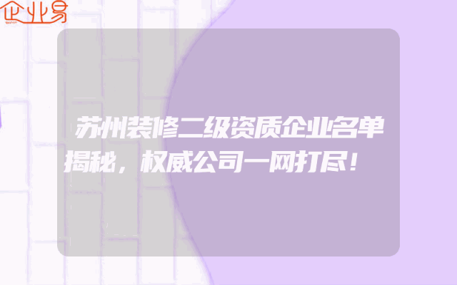 - 苏州装修二级资质企业名单揭秘,权威公司一网打尽!