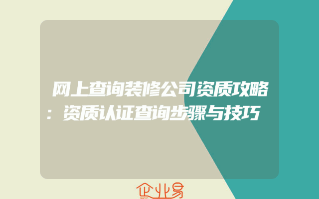 - 网上查询装修公司资质攻略:资质认证查询步骤与技巧