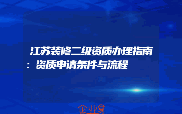 - 江苏装修二级资质办理指南:资质申请条件与流程