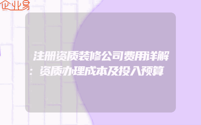 - 注册资质装修公司费用详解:资质办理成本及投入预算