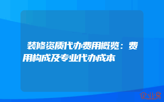 - 装修资质代办费用概览:费用构成及专业代办成本