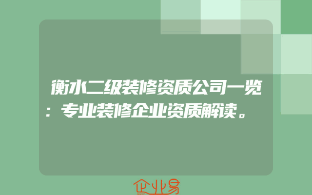 - 衡水二级装修资质公司一览:专业装修企业资质解读。