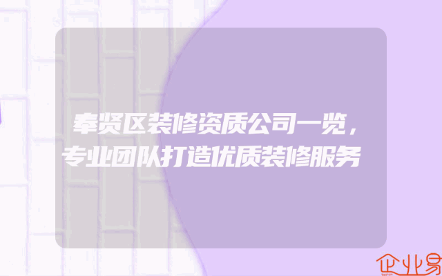 - 奉贤区装修资质公司一览,专业团队打造优质装修服务