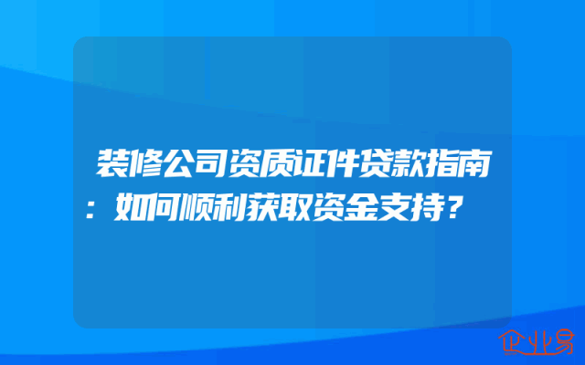 - 装修公司资质证件贷款指南:如何顺利获取资金支持?