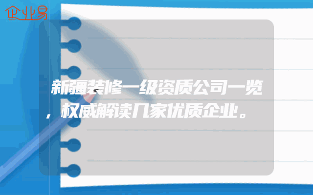 - 新疆装修一级资质公司一览,权威解读几家优质企业。
