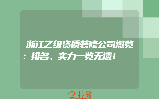 - 浙江乙级资质装修公司概览:排名、实力一览无遗!