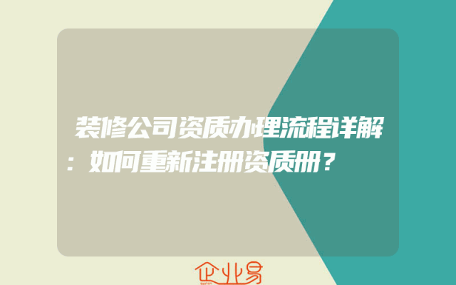 - 装修公司资质办理流程详解:如何重新注册资质册?