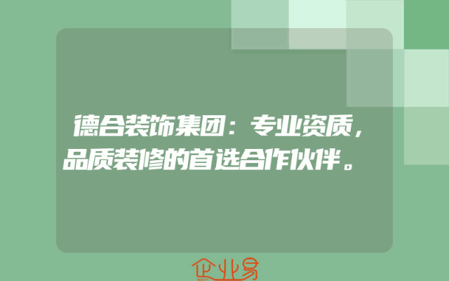 - 德合装饰集团:专业资质,品质装修的首选合作伙伴。