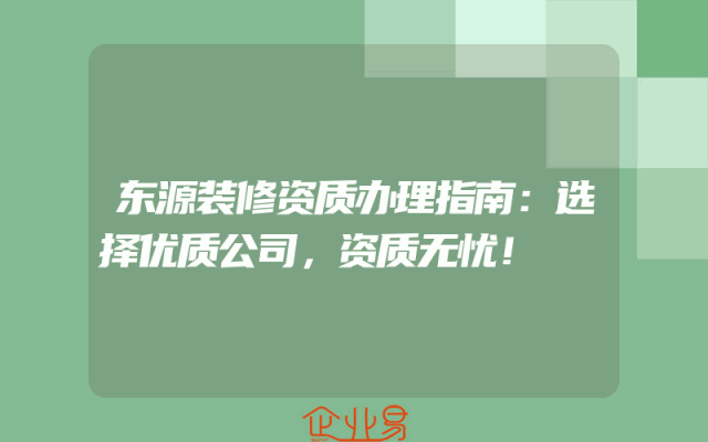 - 东源装修资质办理指南:选择优质公司,资质无忧!