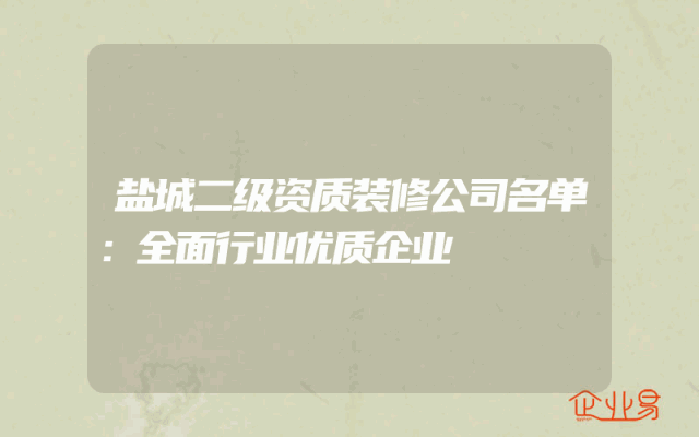 - 盐城二级资质装修公司名单:全面行业优质企业
