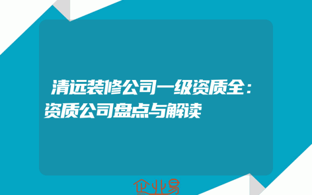 - 清远装修公司一级资质全:资质公司盘点与解读