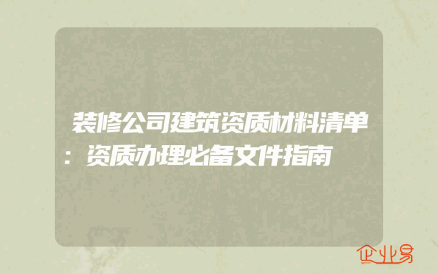 - 装修公司建筑资质材料清单:资质办理必备文件指南