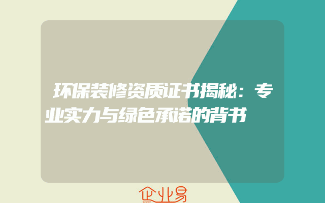 - 环保装修资质证书揭秘:专业实力与绿色承诺的背书