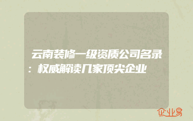- 云南装修一级资质公司名录:权威解读几家顶尖企业