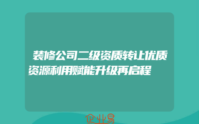 - 装修公司二级资质转让优质资源利用赋能升级再启程