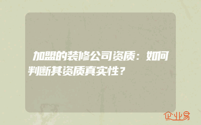 - 加盟的装修公司资质:如何判断其资质真实性?