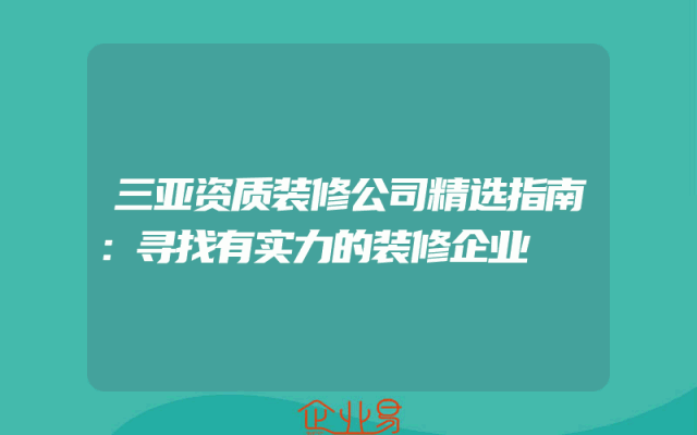 - 三亚资质装修公司精选指南:寻找有实力的装修企业