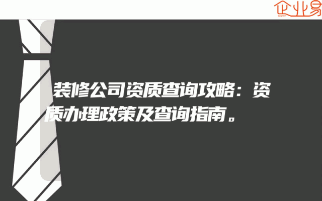 - 装修公司资质查询攻略:资质办理政策及查询指南。