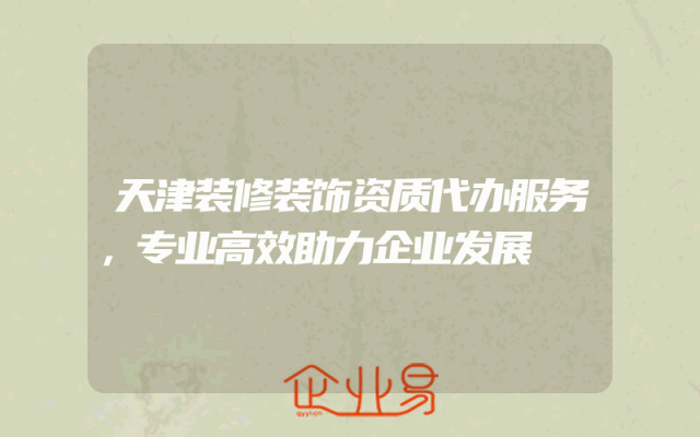 - 天津装修装饰资质代办服务,专业高效助力企业发展