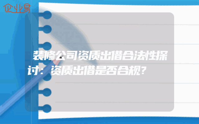 - 装修公司资质出借合法性探讨:资质出借是否合规?