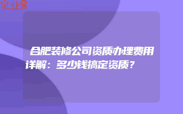 - 合肥装修公司资质办理费用详解:多少钱搞定资质?