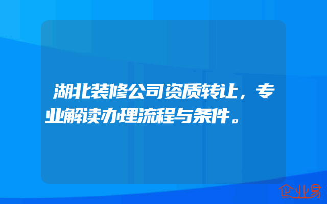 - 湖北装修公司资质转让,专业解读办理流程与条件。