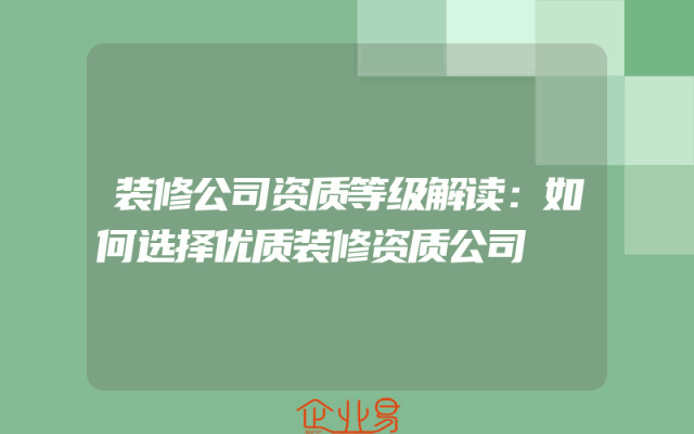 - 装修公司资质等级解读:如何选择优质装修资质公司