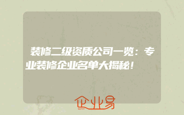 - 装修二级资质公司一览:专业装修企业名单大揭秘!
