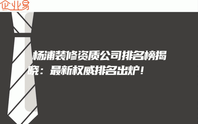 - 杨浦装修资质公司排名榜揭晓:最新权威排名出炉!