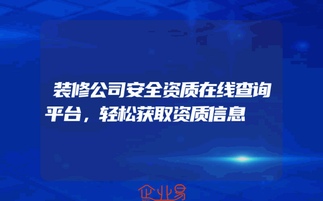 - 装修公司安全资质在线查询平台,轻松获取资质信息