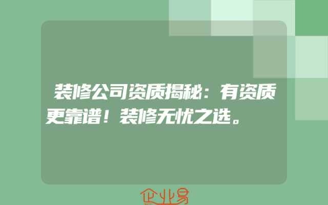 - 装修公司资质揭秘:有资质更靠谱!装修无忧之选。