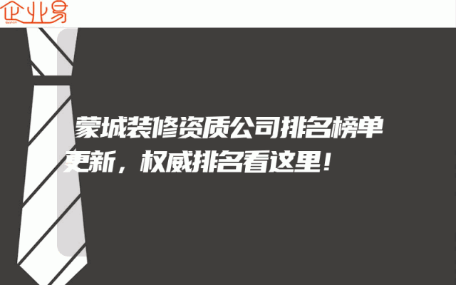 - 蒙城装修资质公司排名榜单更新,权威排名看这里!