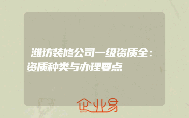 - 潍坊装修公司一级资质全:资质种类与办理要点