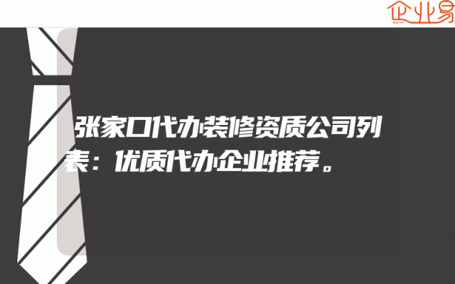 - 张家口代办装修资质公司列表:优质代办企业推荐。