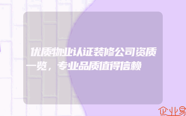 - 优质物业认证装修公司资质一览,专业品质值得信赖