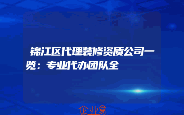 - 锦江区代理装修资质公司一览:专业代办团队全