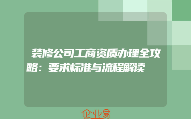 - 装修公司工商资质办理全攻略:要求标准与流程解读