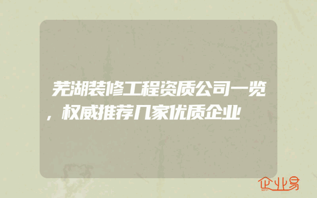 - 芜湖装修工程资质公司一览,权威推荐几家优质企业