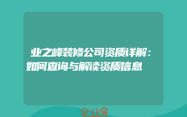 - 业之峰装修公司资质详解:如何查询与解读资质信息