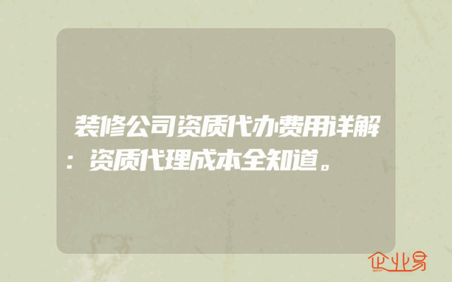 - 装修公司资质代办费用详解:资质代理成本全知道。