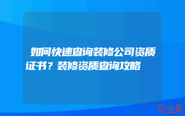 - 如何快速查询装修公司资质证书?装修资质查询攻略
