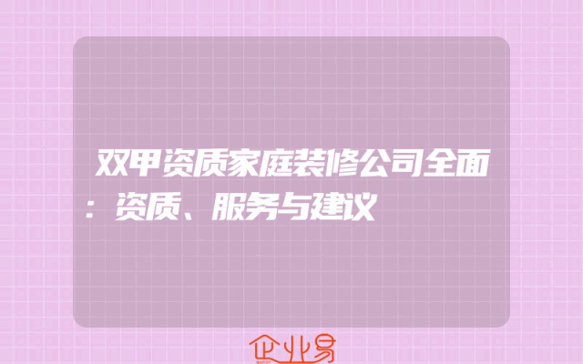 - 双甲资质家庭装修公司全面:资质、服务与建议