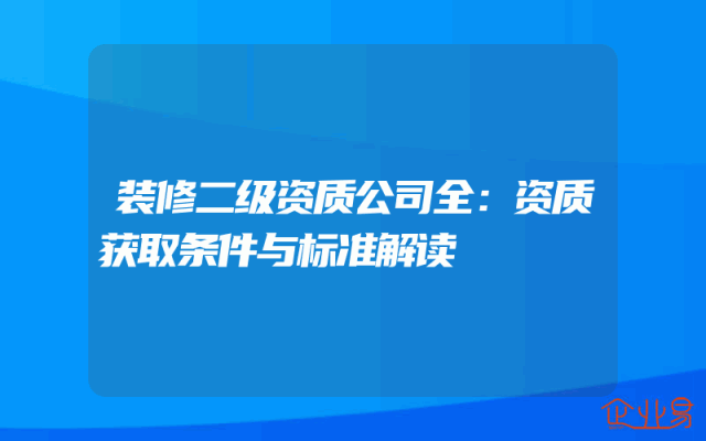 - 装修二级资质公司全解析:资质获取条件与标准解读一、二级资质公司的定义与重要性在现代企业服务行业中,二级资质公司指的是在某一特定领域或行业内,具备较高管理水平和专业能力,符合相关政策和法规要求的企业。获得二级资质对于公司的发展至关重要,它不仅