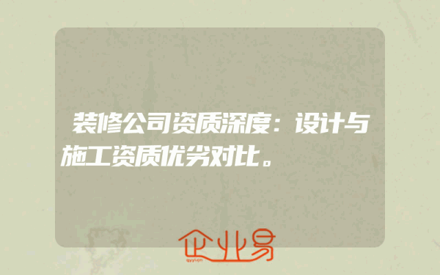 - 装修公司资质深度:设计与施工资质优劣对比。