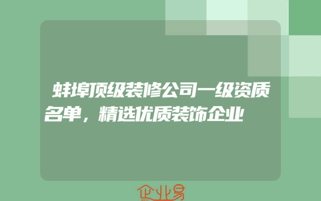 - 蚌埠顶级装修公司一级资质名单,精选优质装饰企业