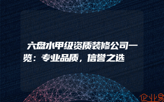 - 六盘水甲级资质装修公司一览:专业品质,信誉之选