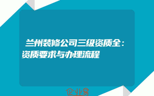 - 兰州装修公司三级资质全:资质要求与办理流程