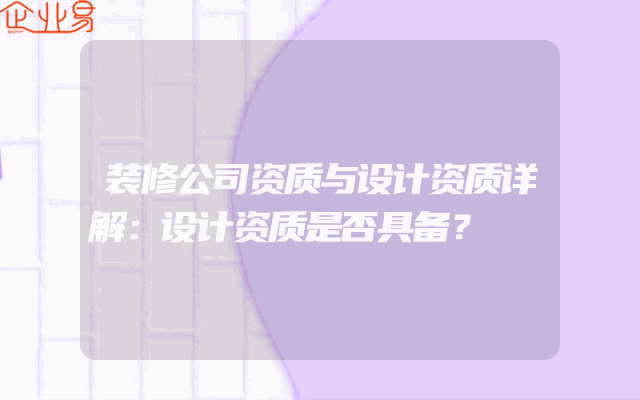 - 装修公司资质与设计资质详解:设计资质是否具备?