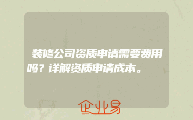 - 装修公司资质申请需要费用吗?详解资质申请成本。
