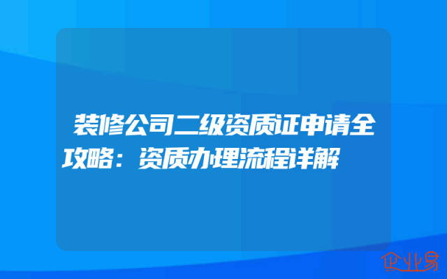 - 装修公司二级资质证申请全攻略:资质办理流程详解